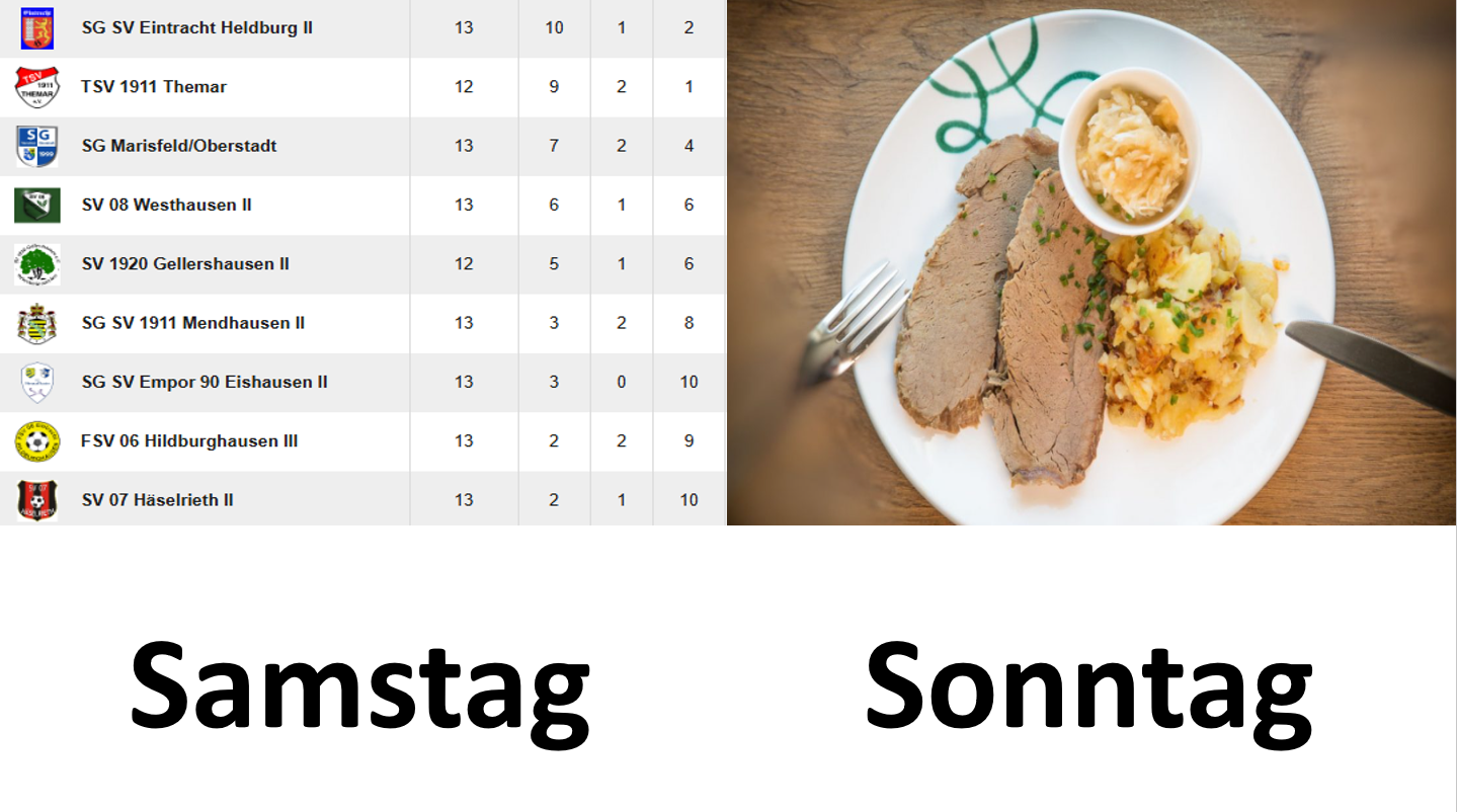 Samstag Tabellenspitz - Sonntag Tafelspitz