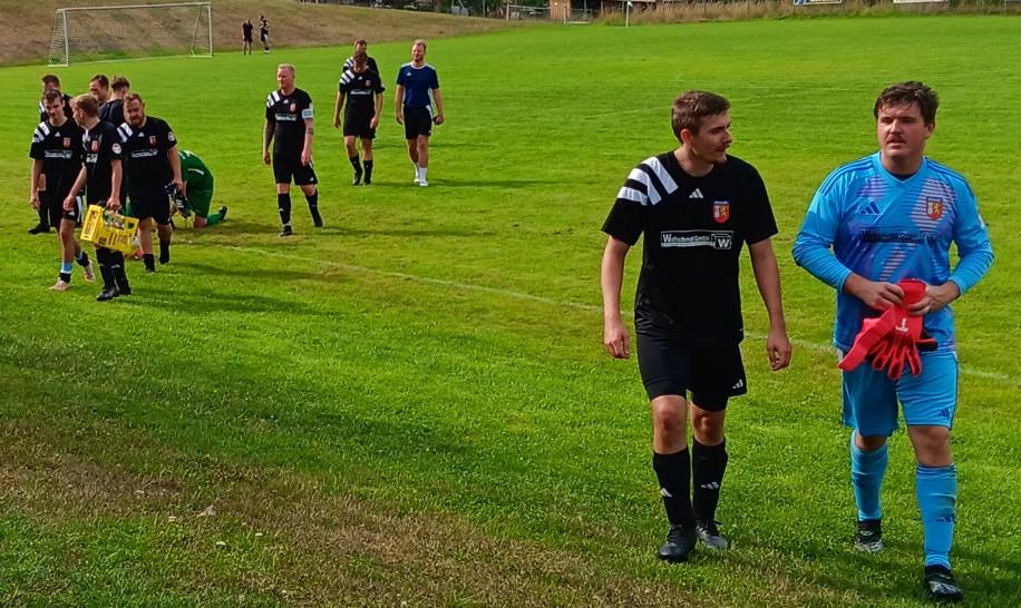Auf dem Balkon des Sportheimes wurden Urlaubserlebnisse ausgetauscht, was zu äußerst interessanten Dialogen führte. Der eine verbrachte seine Jugend bei seiner Großmutter – alles staunte, der andere wohnte bei einem alten Fischer auf der Dom. Rep., dessen Frau die besten Muscheln gekocht hat, die er je gegessen hatte. Hinterher merkte er, dass es dem Fischer sein Sohn war. Passiert. Auf alle Fälle stellten alle einstimmig fest, dass aus der Schweiz viel Gutes kommt. Zum Beispiel der Rhein, der deutscheste aller Flüsse, der Rhein, entspringt in der Schweiz. Und Einer, wahrscheinlich ein pensionierter Geografie Lehrer aus Haubinda, gab seinen krönenden Mostrich final dazu: „Wisst ihr denn, dass unter der A7 in einer Höhle eine kleine Gruppe Reinemachfrauen sitzt, die den ganzen Tag reinmachen, mit der Hand? Und das schon seit Hunderten von Jahren… das zum Thema Rhein - Alle staunten…aber das nur am Ufer,…ähm am Rande. Unter dem Motto, „Never Change the Winning Team“, wurde in der Halbzeit gewechselt und ungestellt. Kurz vorher wurde in beiden Kabinen noch einmal der Unterschied zwischen einem unnötigen Ballverlust und einem Notwendigen Ballverlust in Gruppengesprächen herausgearbeitet, was man damals, seinerzeit zu meinerzeit, also in der schlimmen Zeit, auf dem Brettergymnasium beigebracht bekam. Während der Schiri immer noch seine Pfeife suchte, standen die Teams schon auf dem Platz und pfiffen das Lied „ Baby, don’t hurt me“. Als de Mann im Wellensittich Gelb endlich sich auf den Platz bemühte, wurde er gleich von einem Spieler ausgefragt: „Eh Schiri, hast Du ’ n nassen Helm auf?“ Dem Schiri sein Lächeln ging einmal um den Kopf, und wenn er denselben in den Nacken geworfen hätte , da wäre die obere Hälfte vermutlich runtergefallen. Er sagte zum Spieler: Iss Du lieber nicht mit vollem Mund, vielleicht ab und zu mal mit nüchternen Magen!“